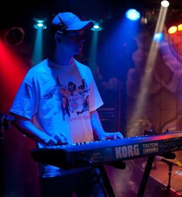 He started playing the guitar at 15 and became obsessed with jazz/rock fusion and progressive rock, and also fell in love with composing and arranging as well. His first album demo "Eureka" was released in 2003 when he was just 18, and he went on to record 5 more album demos. At age 19, he made the decision to take on the piano as his main instrument and has remand predominantly a keyboard player to this day.